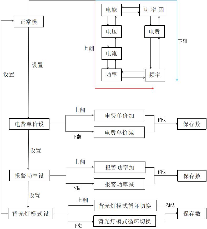 1、“設(shè)置”鍵,用于循環(huán)切換模式。一共八種模式,正常顯示模式、設(shè)置電費(fèi)單價(jià)單位元、設(shè)置電費(fèi)單價(jià)單位角、設(shè)置電費(fèi)單價(jià)單位分、設(shè)置報(bào)警功率單位千瓦、設(shè)置報(bào)警功率單位百瓦、設(shè)置報(bào)警功率單位十瓦、設(shè)置報(bào)警功率單位瓦,八種模式循環(huán)切換。長(zhǎng)按“設(shè)置”鍵將清除電量數(shù)據(jù)。